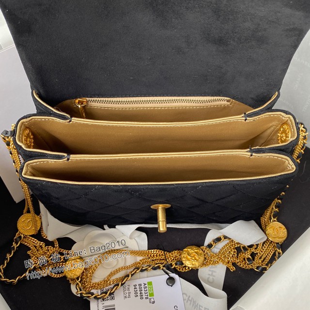 Chanel專櫃22s最新爆款磨砂皮口蓋包 AS3378 香奈兒鴛鴦扣金幣鏈條單肩斜挎女包 djc5360