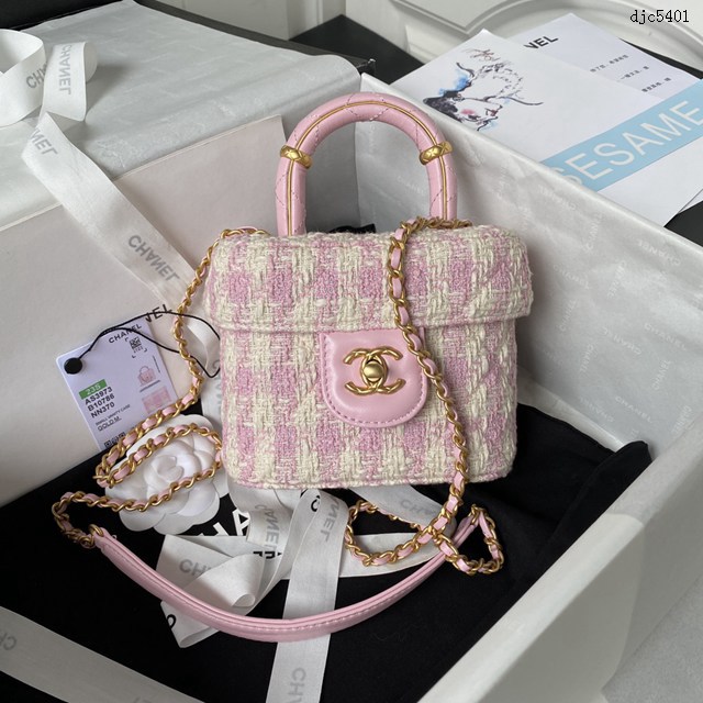 Chanel專櫃23S新款AS3973手柄化妝包 香奈兒斜紋軟呢復古鏈條手提肩背女包 djc5401
