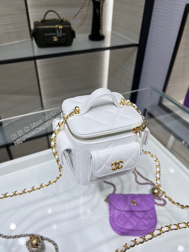 Chanel 22k新品 口袋盒子鏈條包 油臘羊皮 容量大 內置小鏡子 AP3016Y 尺寸11X11X9.5