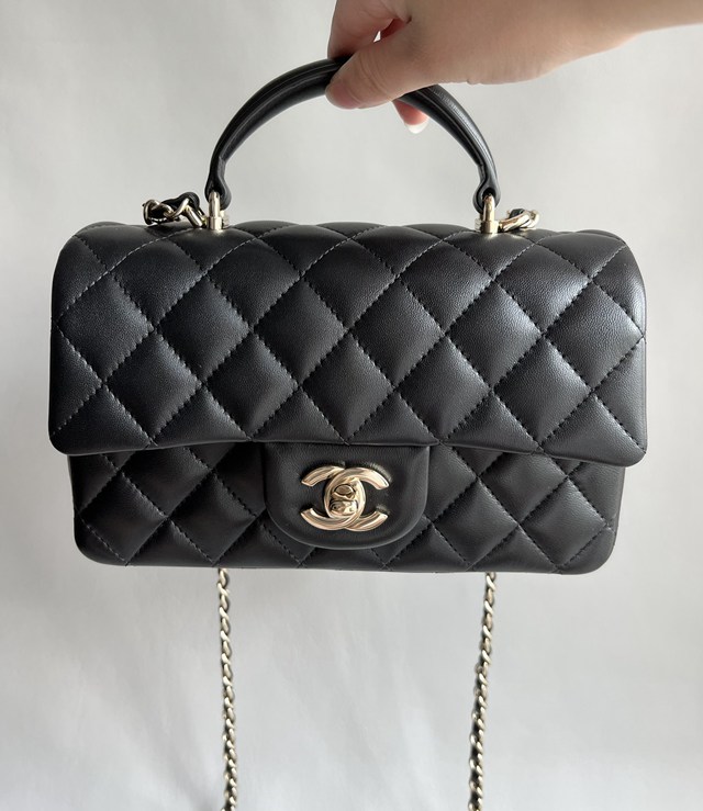 黑色 手柄mini CF黑羊淺金扣絕絕子原廠GR羊皮質地輕盈又飽滿,手感超好!再配上淡金扣真的很柔美!可拎可斜挎好方便;大家別糾結趕緊入吧!