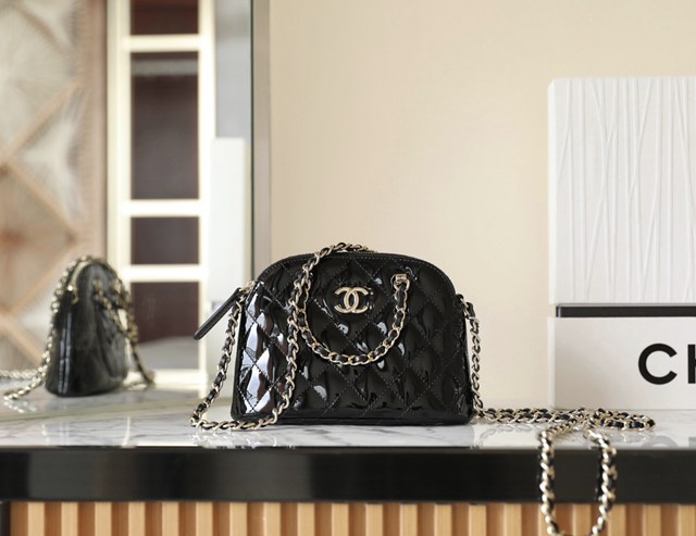 Chanel專櫃新款鏈條女包 香奈兒春夏漆皮貝殼包小號黑色 djc6917