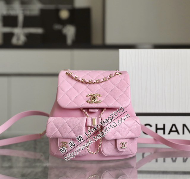Chanel專櫃新款鏈條雙肩女包 香奈兒春夏系列雙口袋復古背包淡粉大號 djc6954