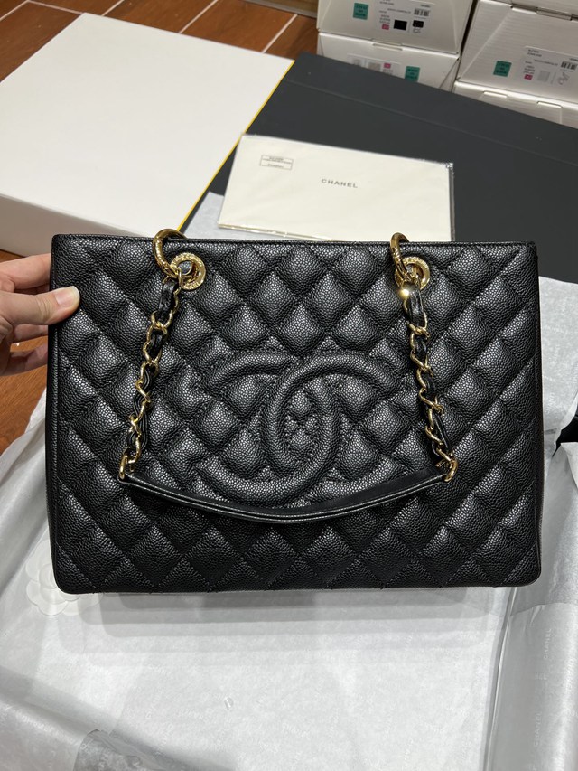 Chanel專櫃新款鏈條肩背女包 香奈兒GST經典款魚子醬牛皮媽咪袋 djc6963