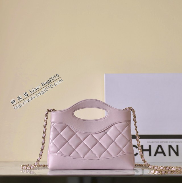 Chanel專櫃新款鏈條女包 香奈兒原廠亮面淡紫色小羊皮包王手提肩背包 djc7075