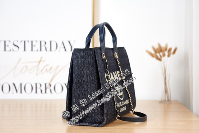 Chanel專櫃新款鏈條女包 香奈兒最新沙灘包冰川藍色黑白配色AS3257 djc7087