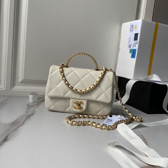 Chane1 CFmini 24s 透明手柄包 AS4848 這款帶手柄的真的太好看啦 金色鏈條與金色透明手提搭配包包 散發奢華高級 很有質感 越看越美膩呀 尺寸:13×20×7cm