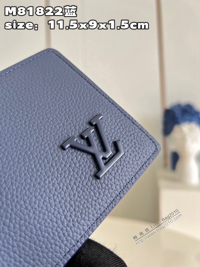 LV專櫃2023新款Multiple錢包 M81822藍 路易威登Aerogram皮革男士短夾錢包 dn1268