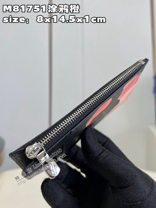 LV專櫃2023新款Room with a View系列Coin卡夾錢包 M81751塗鴉橙 路易威登飄浮雲朵圖案零錢卡包 dn1404