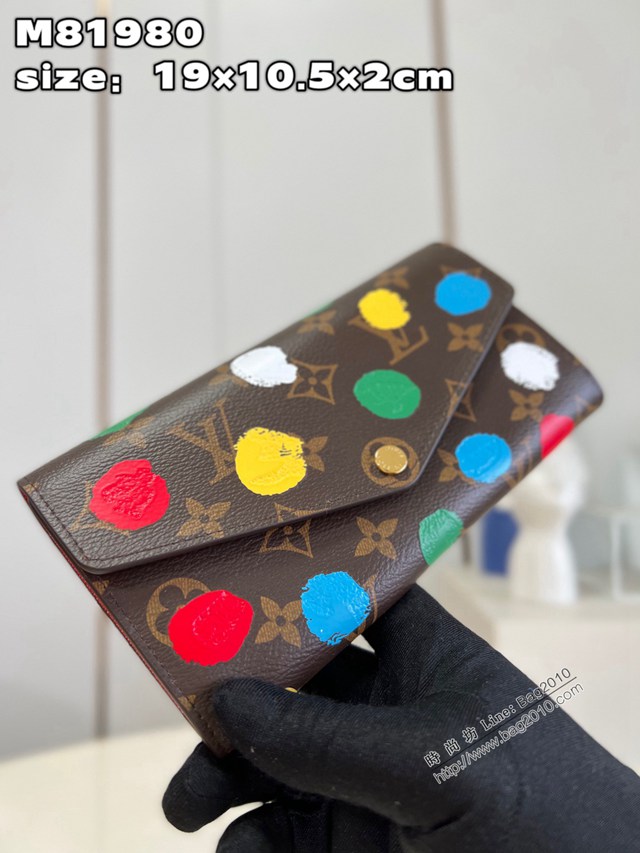 LV專櫃2023新款波點圖案LV x YK Sarah錢夾 M81980 路易威登女士翻蓋長錢包 dn1432