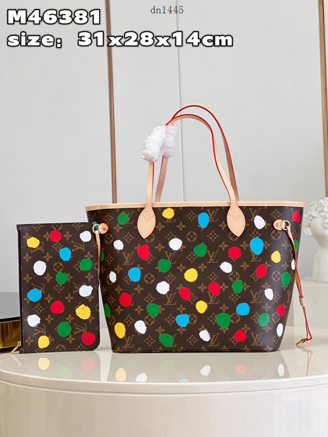 LV專櫃2023新款LV x YK Neverfull中號手袋 M46381/對版 路易威登波點圖案購物袋子母包 dn1445