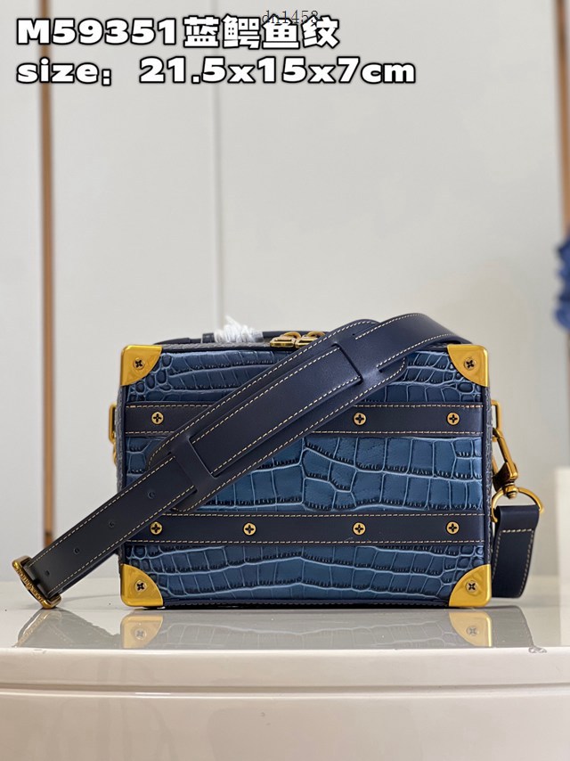 LV專櫃2023新款 Handle Soft Trunk手袋 M59351藍色鱷魚紋 路易威登男士手提包 dn1453