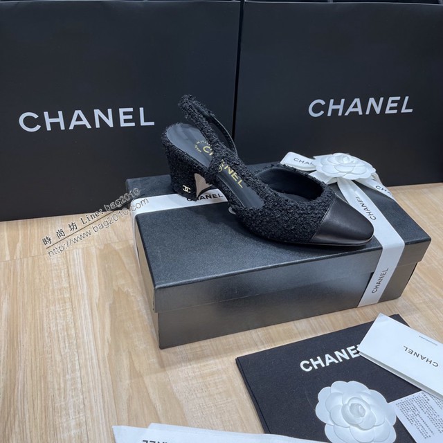 Chanel專櫃經典款女士拼色涼鞋 香奈兒時尚slingback拼色涼鞋平跟鞋中跟鞋 dx2580