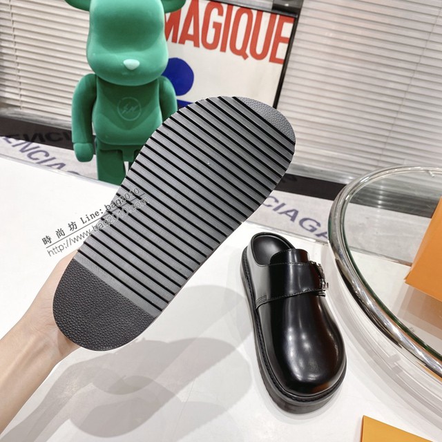 LV路易威登2022春夏新款驢牌LVCosy系列搭扣鏤刻logo標識半拖鞋 dx2797