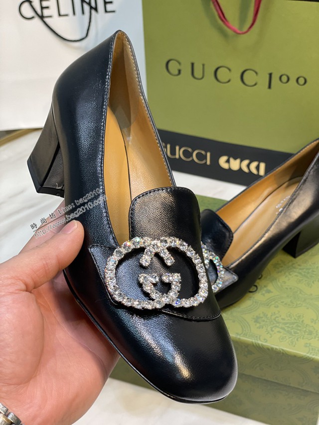 gucci頂級版本女士單鞋 古馳2022春季最新款羊油小皺羊皮平底皮鞋 dx2810