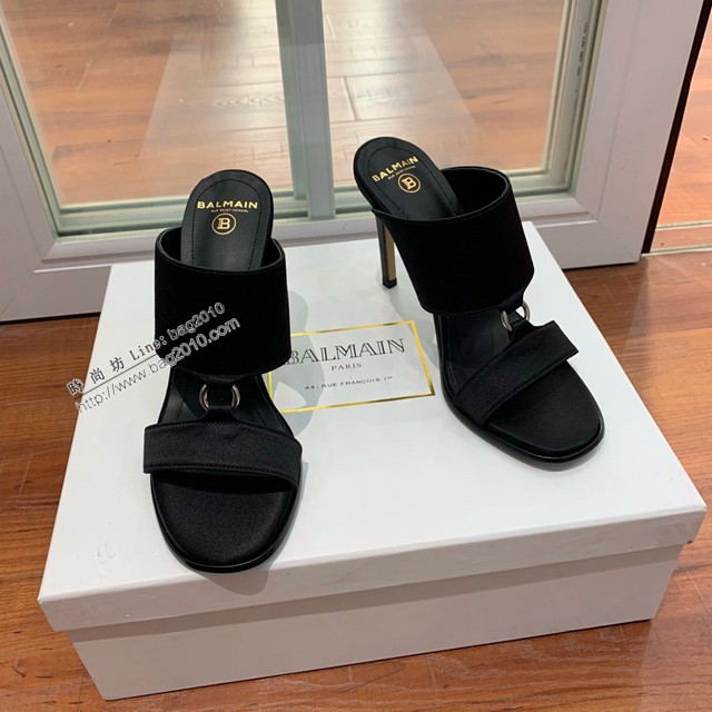 balmain2022專櫃新款高跟拖鞋 定制進口進口真絲鞋面高跟女鞋 dx3105