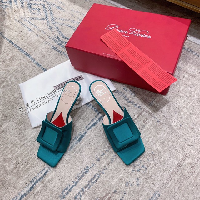 Roger vivier時尚女鞋 RV經典方扣拖鞋 愛心鞋墊女士高跟拖鞋 dx3163