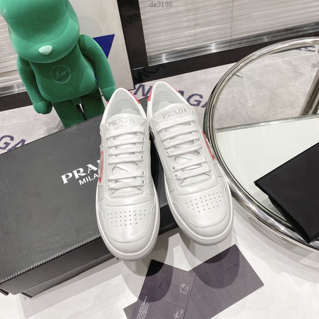 Prada男女運動休閒鞋 普拉達專櫃最新款小白鞋 情侶款平板休閒鞋 dx3186