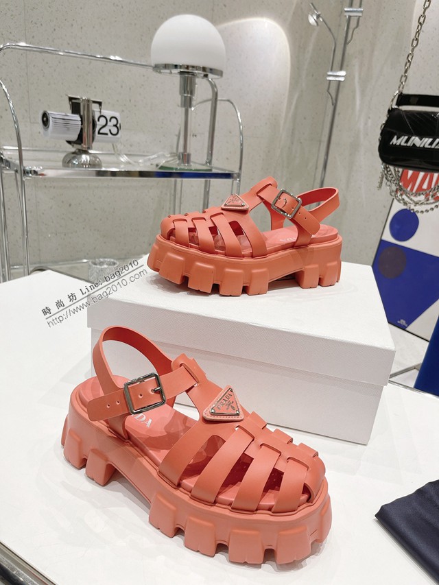 Prada高端女鞋 普拉達2022最新春夏鋸齒羅馬編織厚底橡膠涼鞋 dx3269