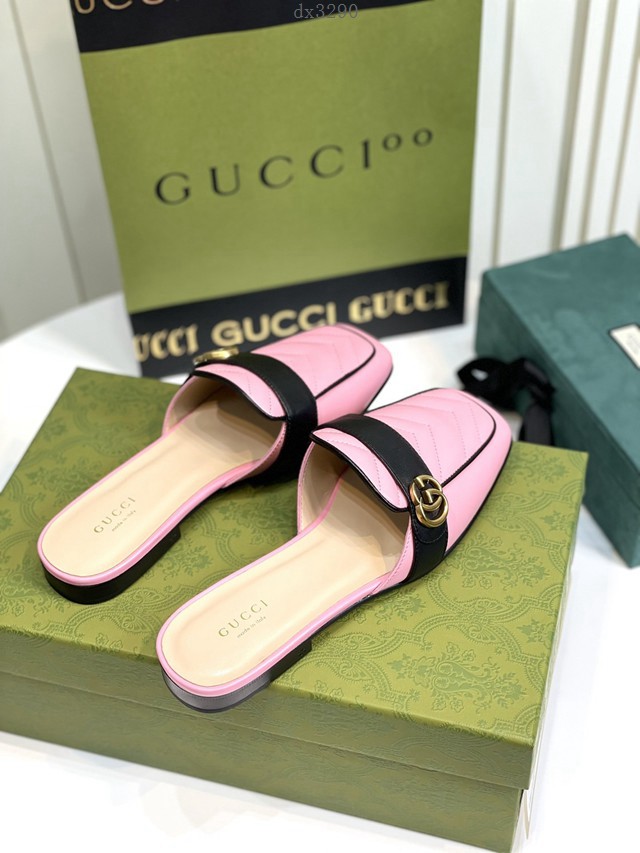 gucci羊皮半拖鞋 古馳22新款Gucci經典平底拖 dx3290