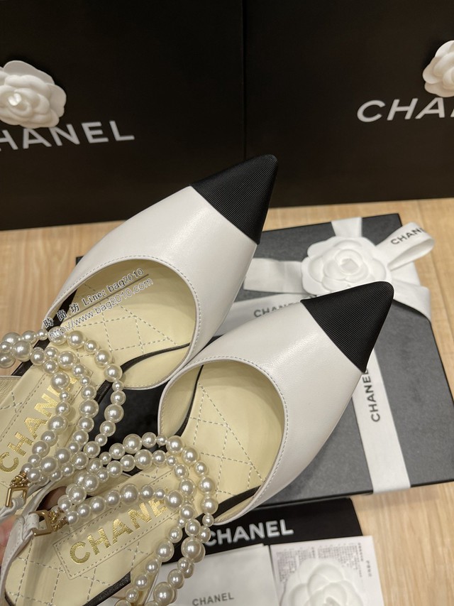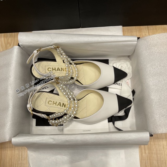 chanel2022最新爆款珍珠涼鞋 香奈兒尖頭平跟涼鞋 dx3353