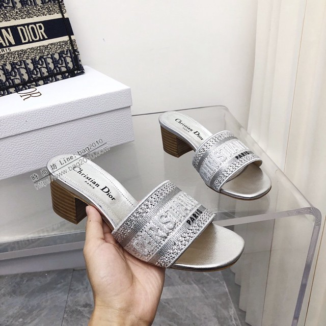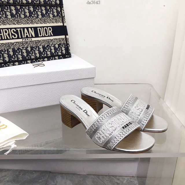 Dior老花刺繡系列涼拖 2022升級款DIOR早春新款提花刺繡鑲鑽高跟拖鞋 dx3643