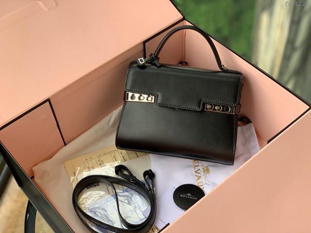 DELVAUX女包 比利時品牌 Tempete手袋 柔軟牛皮 德爾沃女手提包 Mini號手拎包 TP0020黑銀 fcs1225