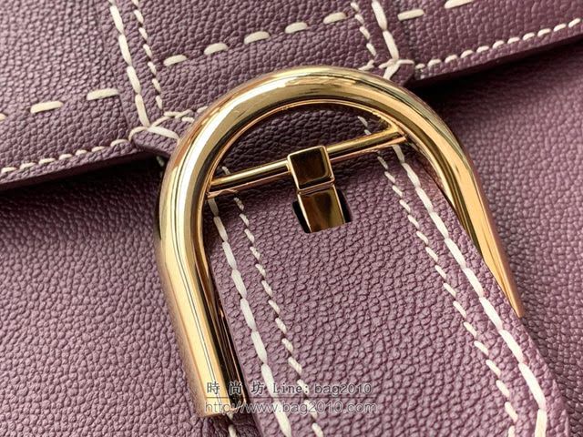 DELVAUX女包 Brillant系列手袋 手縫版黑色MM中號 德爾沃女手提包 女手拎包 Delvaux單肩斜挎包 DF0028手縫 梅紫色  fcs1381