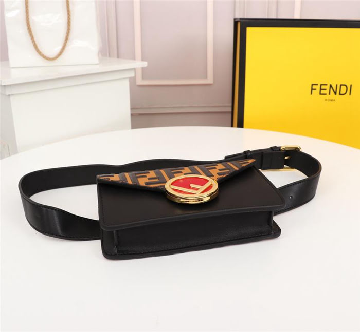 新款腰包胸包鏈條斜挎包 綴以FENDI標誌造型金屬裝飾件。摩卡啡色小牛皮製作,經典FF凸紋印花標誌以手工上色黑色。鍍鈀飾面金屬配飾。尺寸 :18x10x4cm