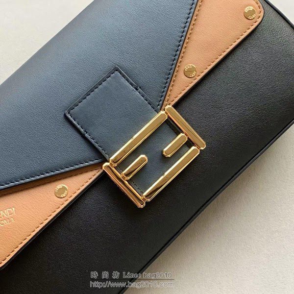 FENDI女包 新款 2229#黑色 翻蓋斜挎單肩包 多色牛皮拼接 F布肩帶 芬迪女挎包  fdz2034