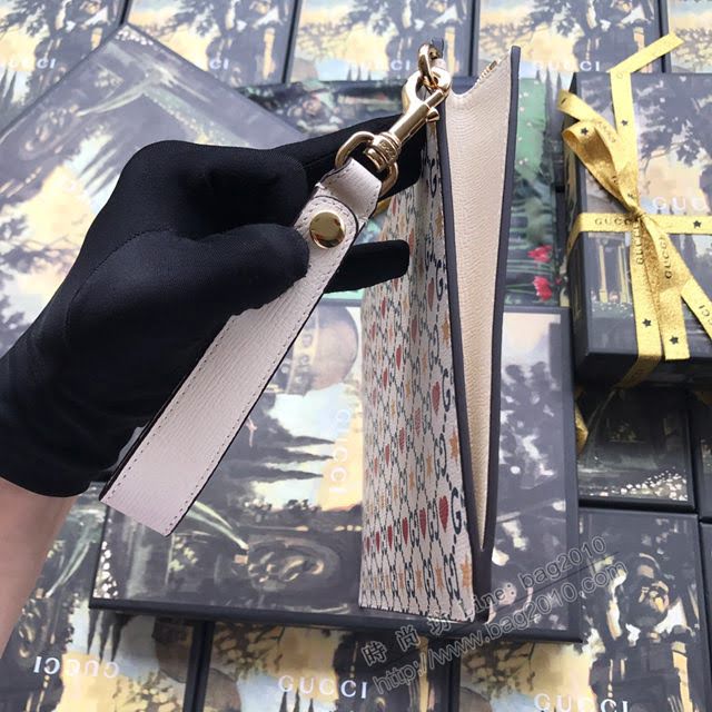 Gucci包 古馳新款手包 七夕情人節特別系列Gucci手拿包 牙筮紋皮革印花 573051愛心全皮  gdj1034