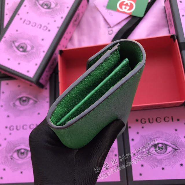 歐洲正品原單美到淋漓盡致無可挑剔採用黃銅配件精心打造配以花朵刺繡標誌性的標識周圍環繞熠熠生輝的紅色水晶精美裝飾於長夾上。型號:499313綠色全皮,尺寸:w19×h10×3cm。