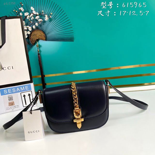Gucci古馳包包 G家新款女包 款號:615965 Sylvie 1969系列迷你肩背包 古奇寶藍色織紋皮小斜挎包 gdj1356
