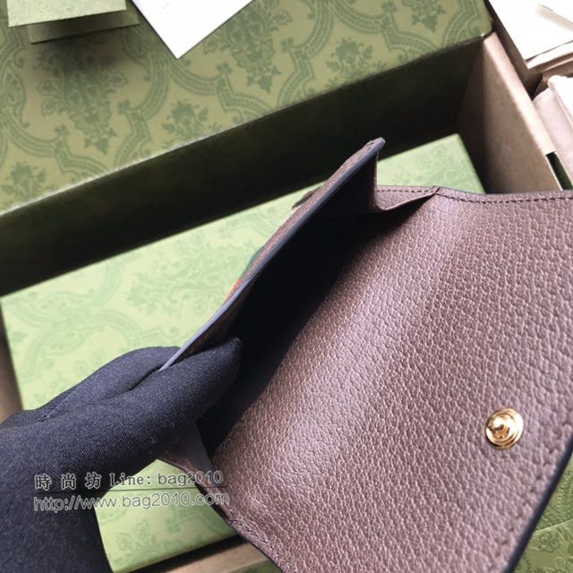 Gucci原厂皮包包 古驰男女GG印花红绿织带翻盖短款钱包 Gucci短夹零钱包 523173 gdj1733