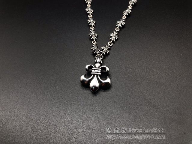 chrome hearts銀飾 925純銀 純手工製作染黑拋光 克羅心童軍花固定小十字項鏈 gjc1544