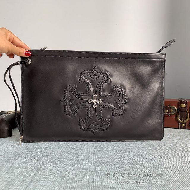 chromeheart克羅心 十字花 手抓包 手拿包!皮料採用 義大利羊皮 柔軟手感好,配件 均為與原版一致的925銀 全程純手工製作。融合搖滾、哥特和朋克的暗黑設計風格,因著匠人精神的滲透,亦綻放出獨特的溫柔。36×22cm 男女同款