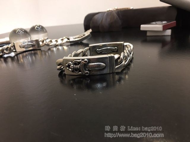 chrome hearts銀飾 克羅心匕首壓舌薔薇光身手鏈 925銀手鏈 克羅心純銀首飾  gjc1802