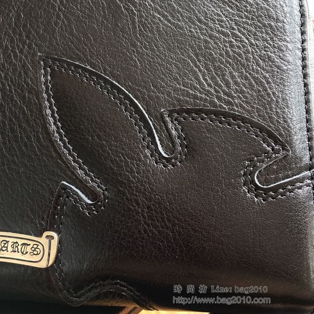 chrome hearts包 克羅心黑色雙火焰摔紋皮錢夾 拉鏈錢包 925銀卷文 克羅心長錢夾 gjc1959