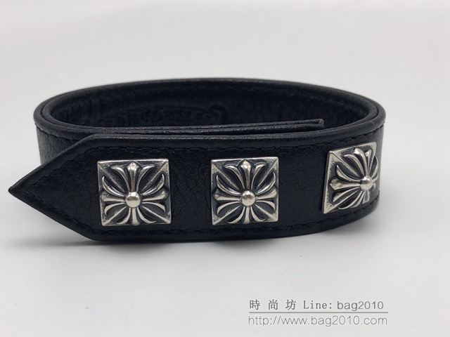 chrome hearts銀飾 克羅心十字四方釘皮手環 925純銀 純手工製作染黑拋光 克羅心手鐲 gjc2041