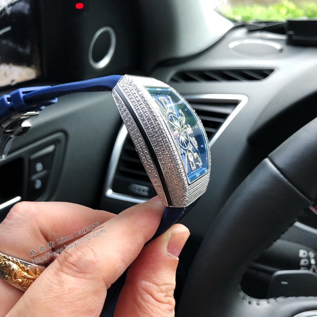 品牌:法蘭克 穆勒 Franck Muller 系列:V45 SC DT系列 尺寸:54*42*15mm 機芯:西鐵城全自動機械機芯(零反修) 鏡面:反炫光高清水晶玻璃 字面: 3D立體人工鑲鑽字面 材料:進口316精鋼鑫表殼 錶帶: 進口橡膠錶帶(表層是牛皮) 表扣: 原裝折疊扣 (超高品質,超A做工,市場最低價,品質最好的一款表)