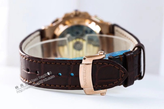 百達翡麗鸚鵡螺不銹鋼錶帶水沙紋拉絲經典複刻專櫃男士腕表 鸚鵡螺真計時腕表 gjs1968