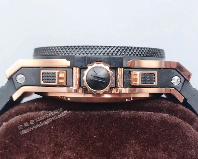 HBBV6.全新升級宇舶hublot恒寶BIG BANG 4100原裝機芯341.CX.130.RX 雙蔔藍寶石玻璃,44mm 原版開模最強副版,原裝4100多功能計時機芯,機芯動力儲備:42小時擺幅振頻28800,原裝折疊表扣,進口橡膠錶帶,100米深度防水。方鑽圈,圓鑽圈,陶瓷圏,滿鑽殼隨君挑選。簡約幹練,低調奢華,雅致而不張揚,清新而耐看。佩戴舒適,與腕表表殼相互映對,給人唯美的享受。