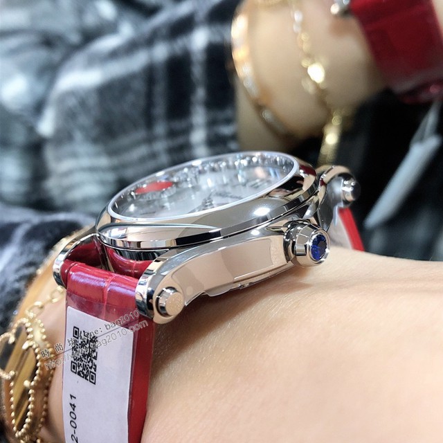 蕭邦情人限量版-躍動的心石英鱷魚皮女士腕表 蕭邦快樂鑽系列女表  gjs2231