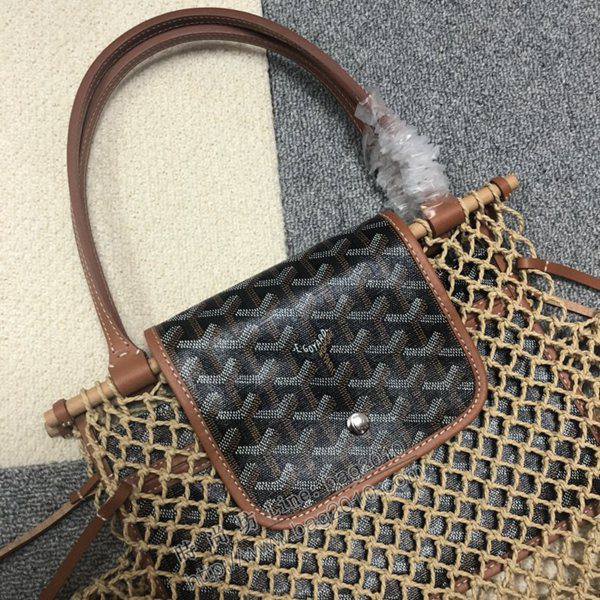 Goyard(戈雅)Aligre網袋已出貨 材質沿用了品牌獨一無二的精緻混合皮革.酒椰網與標誌性的帆布與櫸木,容量大,內含皮質網兜可放一些比較重要東西,增加時髦或休閒度一定不能少了它,時尚達人必備神器,尺寸高25 底長35,其他看細節哦