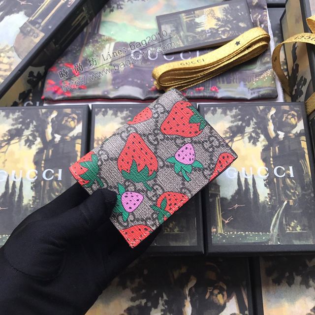 Gucci包 古馳卡包 573839pvc粉 2019新款 Gucci印花草莓卡包 gudj1449
