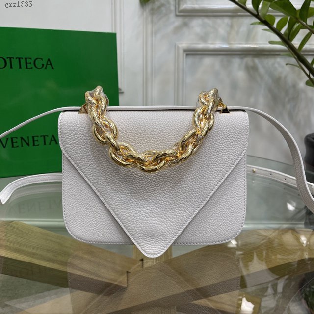 Bottega veneta高端女包 KF0021 寶緹嘉白色荔枝紋肩背女包 BV2021新款V字蓋頭鏈條女包 gxz1335