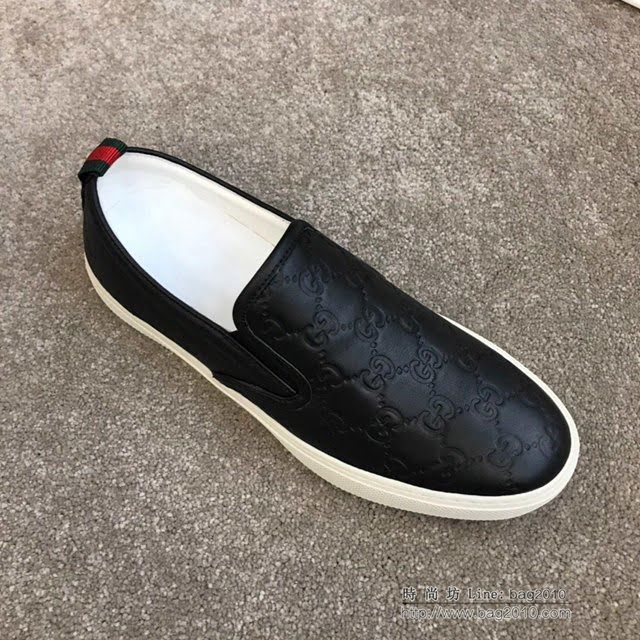 GUCCI男鞋 專櫃同步 高密度電繡小蜜蜂 古馳男士休閒鞋 Gucci黑色板鞋  hdnx1042