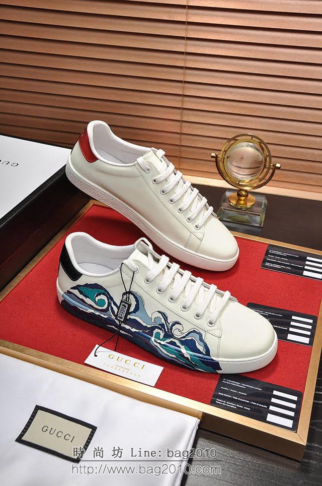 GUCCI男鞋 高品質版本米白色牛皮 2019專櫃同步爆款小白鞋 古馳男休閒鞋 Gucci低幫板鞋 情侶鞋  hdnx1166