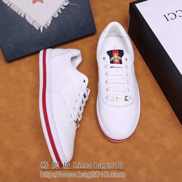 GUCCI男鞋 古奇年度最新款 古馳牛皮男運動鞋 Gucci休閒白色男鞋 hdnx1213