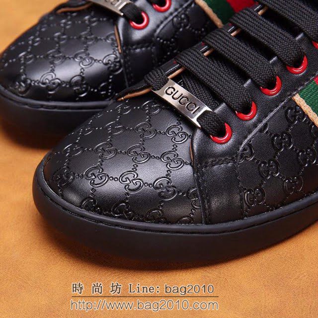 GUCCI男鞋 古奇年度最新款 古馳牛皮男運動鞋 Gucci休閒黑色男鞋  hdnx1216