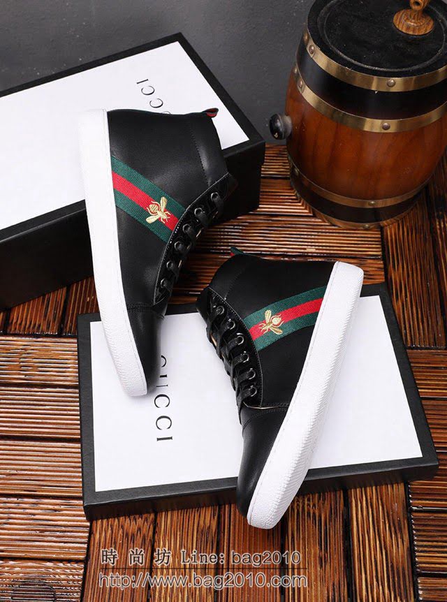 GUCCI男鞋 古馳高幫小白男鞋 Gucci最新時尚休閒男鞋 潮流百搭款 牛皮鞋  hdnx1329